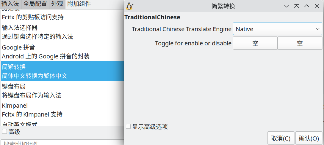 check-language-support 同时安装了系统中缺失的中文语言包(在 区域设置-语言 中点击安装缺失的语言包没有反应),这样才能在第3步中看到 输入法 的选项。 - 启用 fcitx5